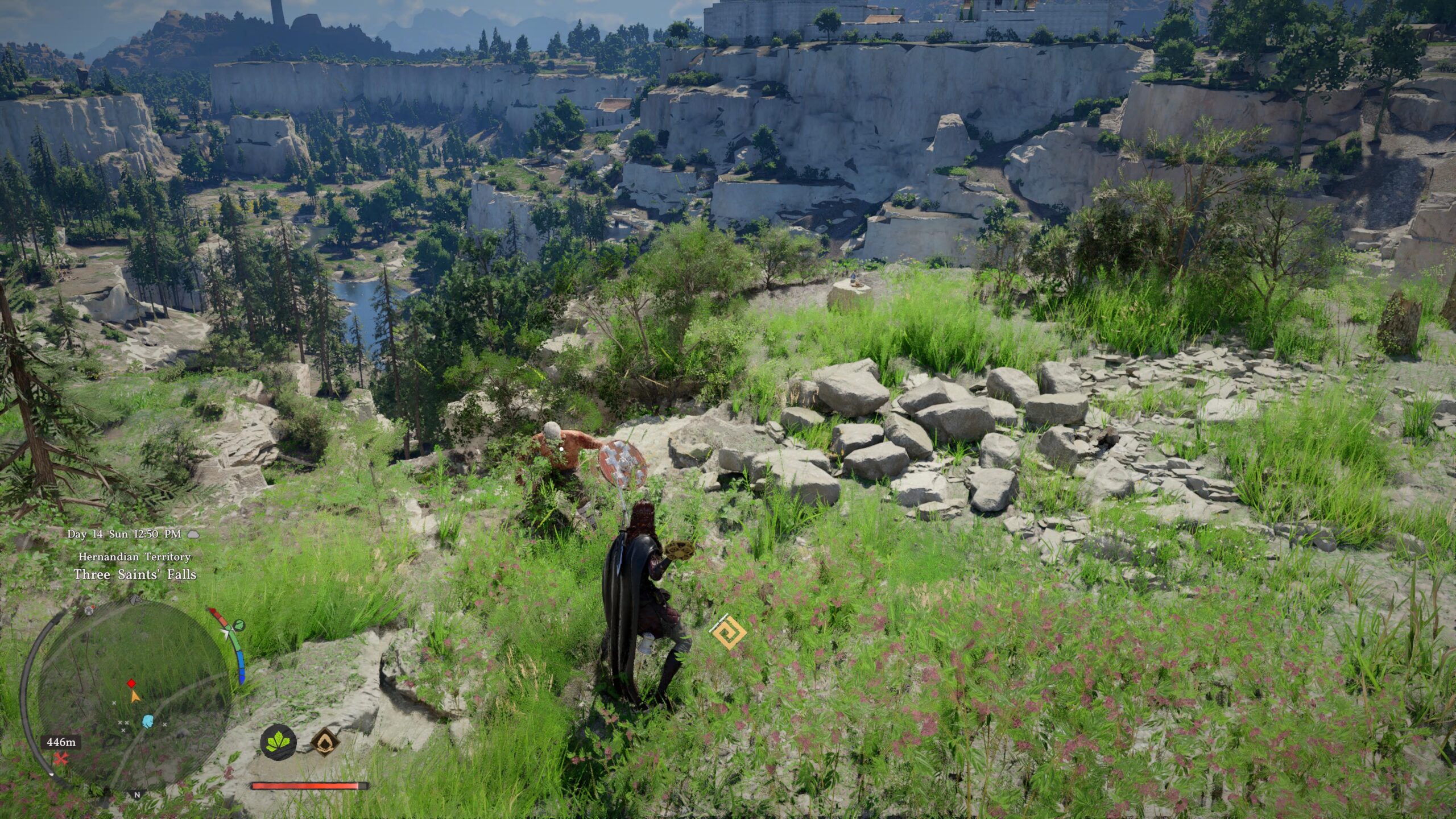 As expected, the game looks amazing on PS5, albeit with some minor issues. The environments are truly breathtaking, and we absolutely loved exploring every nook and cranny. We often actually got lost while exploring and noticed we steered off course from the quest we were actively embarking upon. There are minor issues, however, where we noticed a lot of clipping issues, textures loading slowly, and the latter often happens when entering buildings. Some lighting issues also happened when entering buildings. Even so, some of these bugs were immersion-breaking, like one instance where Naria gets kicked through a door, but the door remains closed during this occurrence. Ghost doors must be a thing in the Crimson Desert universe. Bugs like these and some clipping issues aside, we still very much loved what was on offer here.