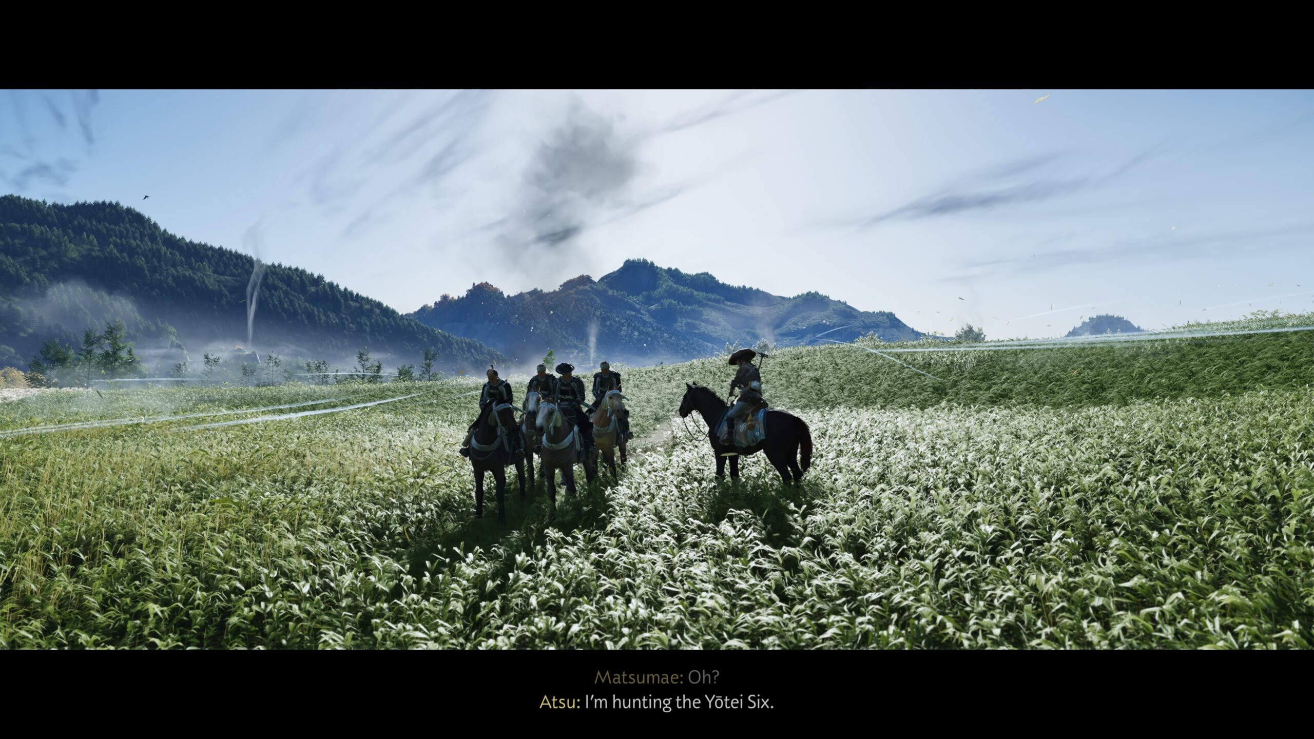 In Ghost of Yōtei, you’ll be playing as Atsu, who is on a fairly chliché quest for revenge. At a young age, her family was murdered by the Yōtei Six, and they left Atsu for dead while torching her childhood home. Fast-forward 16 years, and Atsu is roaming Japan as a mercenary, still hellbent on exacting her revenge and eventually joining her family in death. It’s a somewhat predictable story for the most part, with a few interesting plot twists along the road. Even if the main story does not always manage to impress in terms of narrative content, the overall story presentation was rather impressive. We felt like we were playing through an epic cinematic experience, and that feeling never went away, even after spending quite a few hours accompanying Atsu on her main quest, but also during smaller side missions. The latter also has a few interesting narrative components, and it’s clear that a lot of attention was spent on making the world feel alive with interesting characters.