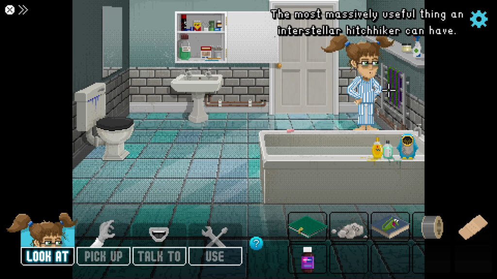 If you, like us, grew up with Humongous Entertainment’s point-and-click games, you’ll particularly enjoy how many “clickables” there are littered across each screen. We were caught off guard by just how much we enjoyed randomly interacting with objects, just to see what happened -something that was our favourite part of Freddi Fish or Putt-putt. The kind of jokes that Lucy Dreaming throws at you with these wouldn’t fly in either of the aforementioned titles, but even then, this feature hit us right in our nostalgic feelings. Now, we can’t deny that a good chunk of what we adore about Lucy Dreaming is tied to that 90s nostalgia, but that is undeniably part of the appeal.