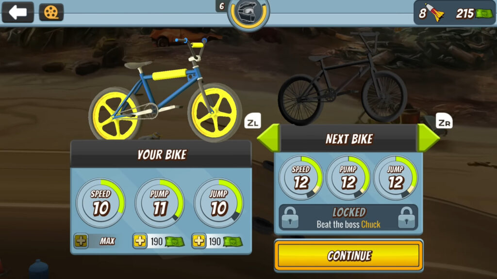 For the most part, the transition of Mad Skills BMX 2’s core game to the Switch was handled well, but there are some areas where the game’s mobile roots are still showing. In the mobile version of the game, players could speed up game progress through microtransactions, enabling faster access to better bikes or more rockets. Microtransactions have been removed entirely here, with a one-time €9.99 payment giving you access to the full game. Unfortunately, Mad Skills BMX 2’s in-game costs weren’t adjusted accordingly (or at least, not enough), resulting in a poorly paced game where progression can feel grindy as bike costs inflate, and difficulty spikes push you to revisit old tracks over and over again. The game ends up keeping a freemium feel, even though this is a paid console version.