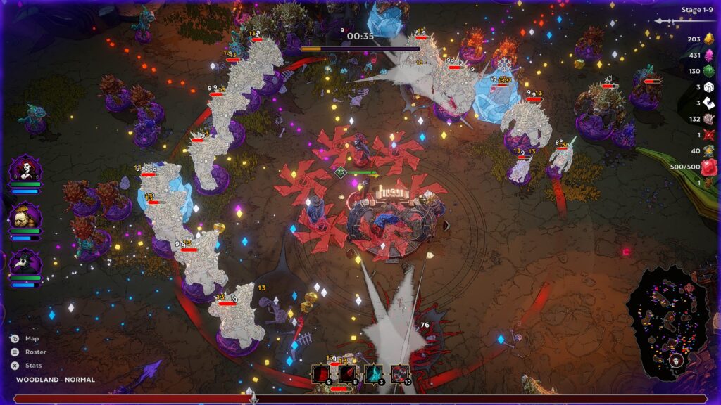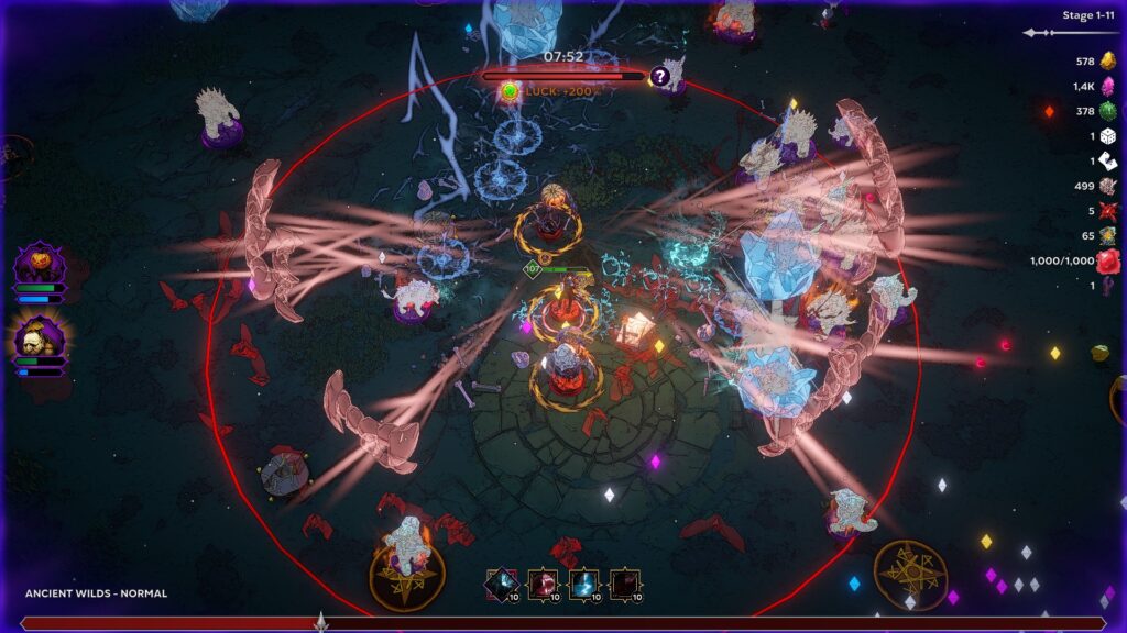 As you play through the different levels, you’ll complete challenges, which unlock new active skills and passive abilities that may be purchased to be added to the available options that are offered to you when you level up during a run. You’ll also have different gear options, a skill tree to invest in, new followers to unlock, options to restore the castle to its former glory, and even relic upgrades. There are more than enough different currencies to collect for all these upgrades and unlocks, and we dare even say that there were perhaps a few too many currencies. The game also locks certain upgrades behind progress, but also behind difficulty thresholds. You’ll only unlock your second relic slot when you have pretty much reached the final three levels of the game, and the same can be said about the headgear slot of your equipment. We understand that this is done to later try the game on a higher difficulty setting, but there’s not that much to return to here due to the overall limited content, which is also the Night Swarm’s biggest flaw at the time of writing this review.