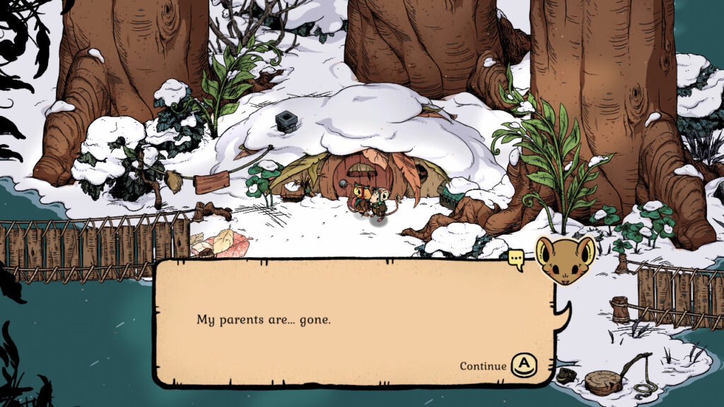 Opening with a heart-wrenching premise, Winter Burrow tells the story of a little mouse that tries to survive winter on his own for the first time. His parents have died, and our intrepid little orphan returns to the burrow that he grew up in. Upon arrival, he discovers that the burrow is in a terrible state and his aunty, who was supposed to take care of it, is nowhere to be seen. With winter slowly but surely creeping up on him, our tiny protagonist has little choice but to restore his old home to its former glory, so that he at least has a place to stay out of the cold. And then there’s the mystery of his missing aunty to solve…